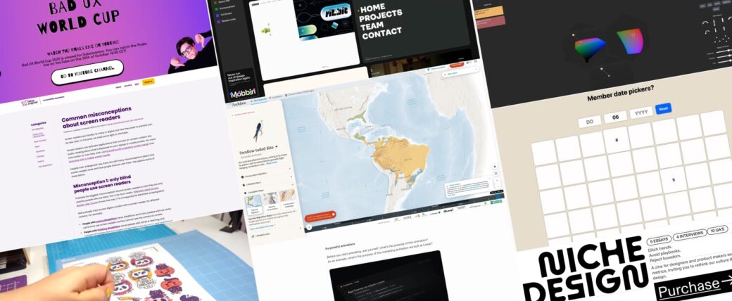 👉🏻 Curated weekly UX Research, Design & Tech resources: UX animations done right, common misconceptions about screen readers, niche design magazine, bird migration explorer, bad UX world cup, pictures of polar bears in abandoned station, navbar gallery inspiration, 3D OKLCH volume color tool, the w3c logo refresh, most beautiful places in the world, aria-current for accessible navigation.